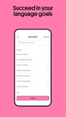 Preply forvandler sprogindlæring til en engagerende og effektiv proces. Ud over personlig undervisning kan du udforske interaktive spil og materialer designet til at styrke din forståelse og fastholdelse. Fra forretningsengelsk til eksamensforberedelse og et omfattende parlør – Preply understøtter alle aspekter af din udvikling. Uanset om du søger at lære kinesisk, forbedre dit franske ordforråd eller tage en indplaceringstest for at kortlægge din fremgang i arabisk, er Preply udstyret til at hjælpe dig med at nå dine ambitioner. Og som en varm velkomst kan du benytte koden APP20 for en eksklusiv 20% rabat på din første lektion.