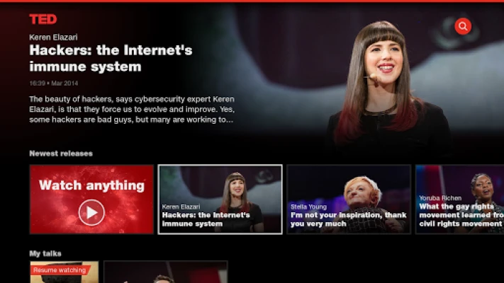 Vi har forfinet TED-appen for at gøre din opdagelsesrejse endnu mere gnidningsfri og givende. Den nyligt redesignede startskærm præsenterer dig dagligt for et kurateret udvalg af anbefalede foredrag, der sikrer, at du altid har adgang til friskt og relevant indhold, som matcher dine interesser. Med en opfrisket og intuitiv grænseflade er navigation gennem vores omfattende bibliotek af foredrag og omhyggeligt sammensatte afspilningslister nu nemmere end nogensinde. Uanset om du søger dybdegående viden om et specifikt emne eller blot ønsker at lade dig overraske, er det ubesværet at finde netop det, du søger – eller det, du ikke vidste, du manglede.