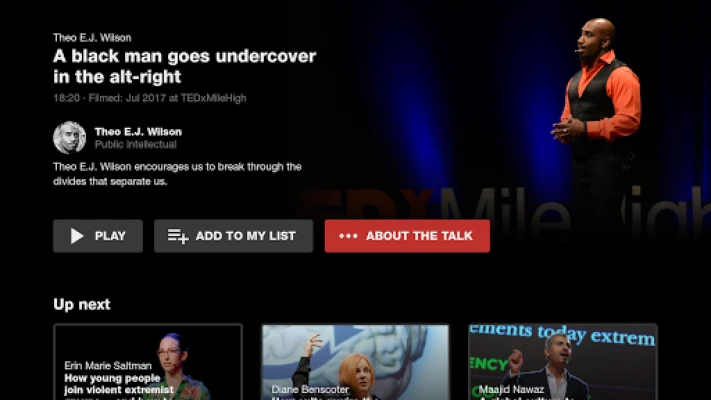 Oplev den forbedrede TED TV app til Android TV. Inspirerende taler fra eksperter inden for videnskab, forretning og globale emner. Udforsk daglige anbefalinger, nem navigation og Google Assistant-kontrol. Bliv inspireret, fodr din nysgerrighed, og lær nyt.